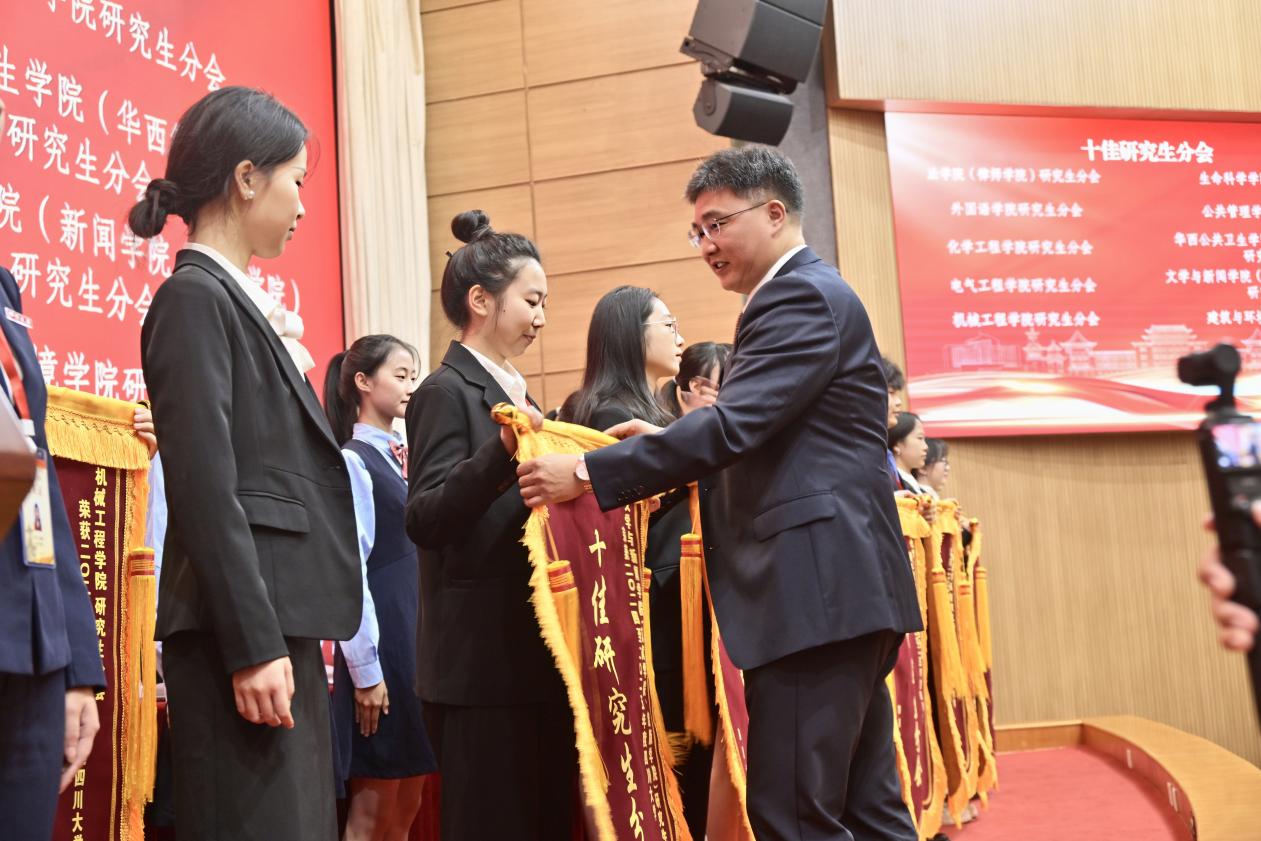 校党委副书记刘晓虎教授为“四川大学2024-2025学年十佳研究生分会”颁奖