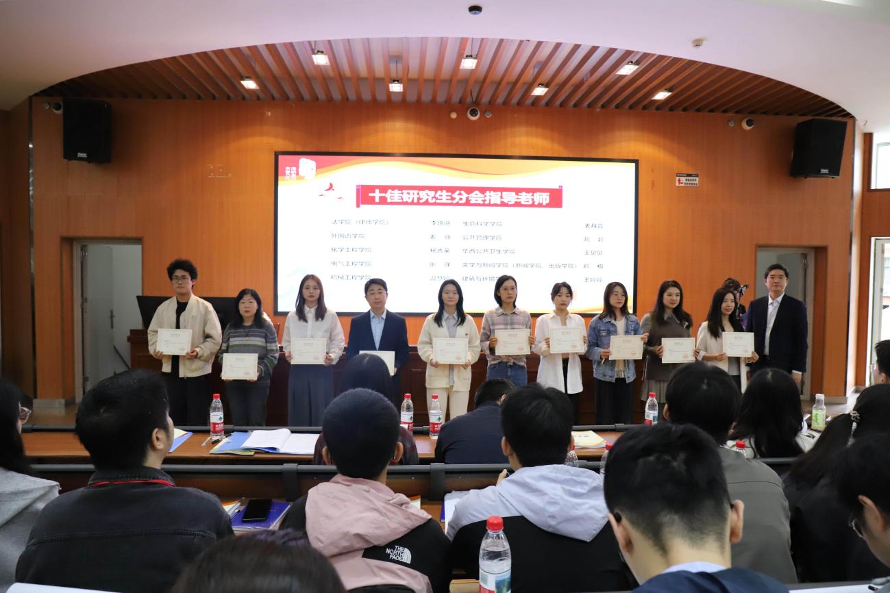 研究生院副院长兼研究生工作部部长钱祉祺老师为十佳研究生分会指导老师颁发荣誉证书