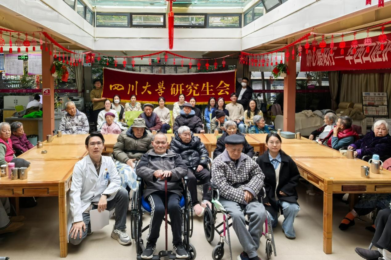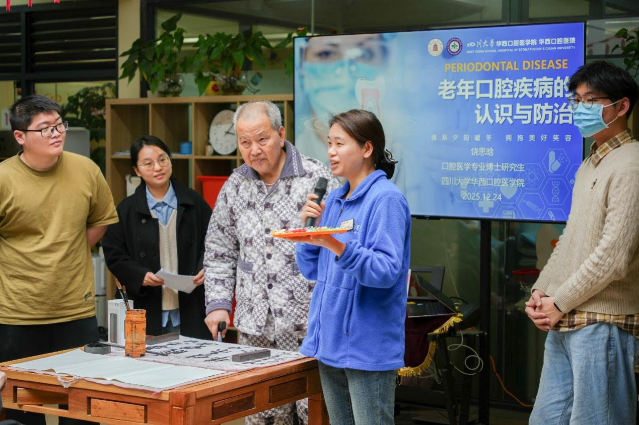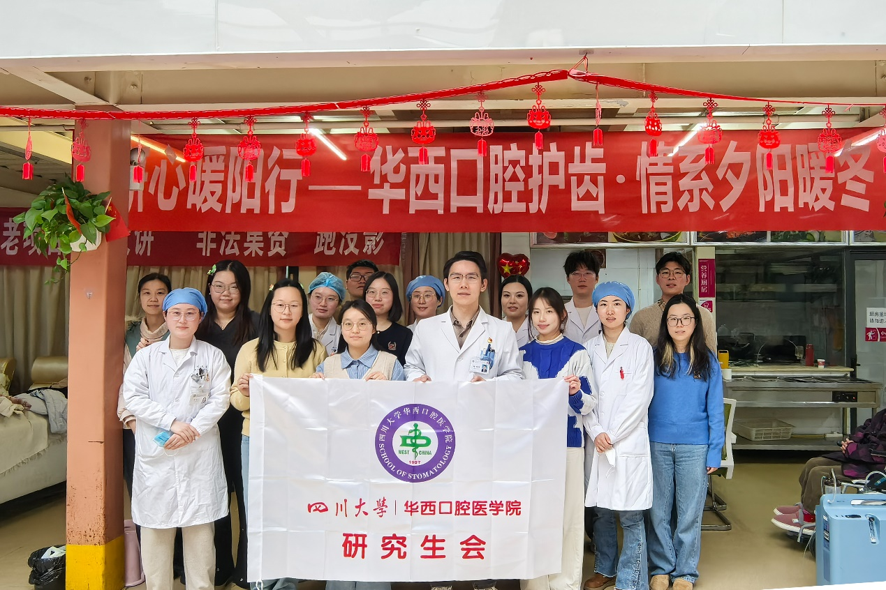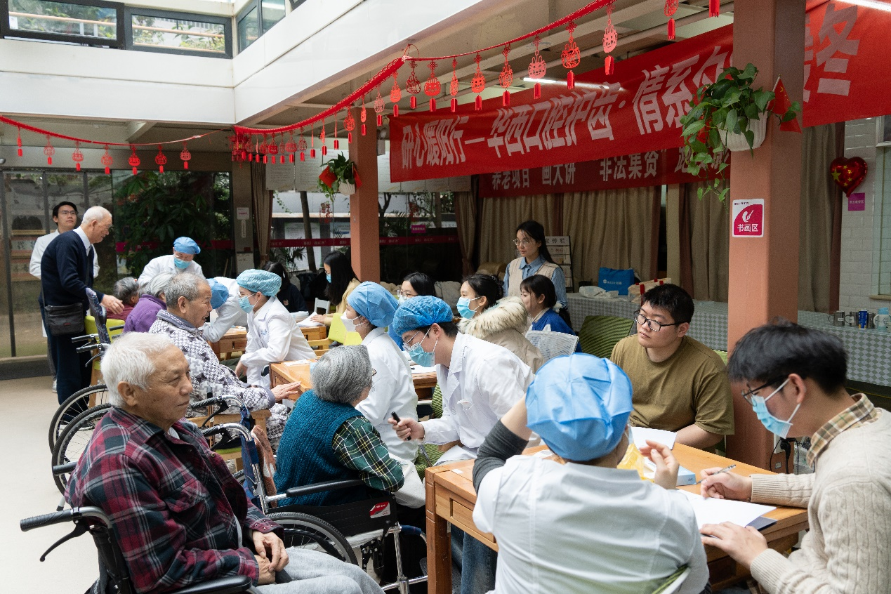 冬至刚过,暖意在心。12月24日,由四川大学研究生工作部指导,四川大学研究生团委研究生会主办,华西口腔医学院研究生团总支研究生分会承办的“研心暖阳行——华西口腔护齿・情系夕阳暖冬”公益志愿服务活动,在华西坝养老院多功能厅圆满举行。活动以专业口腔健康服务为核心,涵盖科普宣教、互动问答、公益义诊等多个环节,养老院25位老人全员参与,累计服务覆盖老人、家属及养老院工作人员近40人次,华西口腔医学院的志愿者们用青春力量为老年朋友的口腔健康保驾护航。