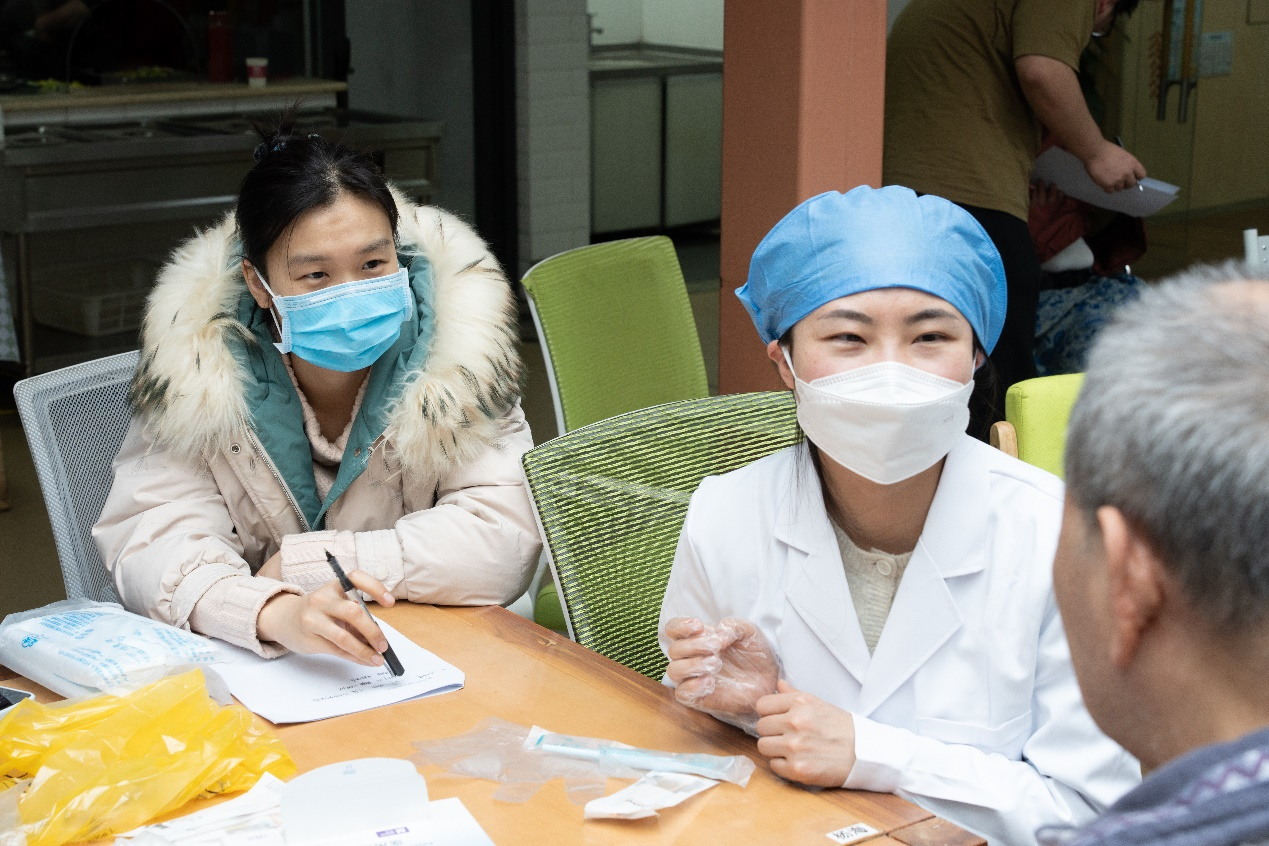 作为活动的核心环节,义诊服务始终秉持“专业、贴心、安全”的原则。6名持有口腔医师资格证的华西口腔硕博研究生组成义诊团队,在10名辅助志愿者的配合下,为老人提供一对一口腔健康检查。志愿者们耐心询问老人口腔状况,细致检查牙齿、牙龈及义齿佩戴情况,针对龋齿、牙周炎、义齿松动等常见问题,现场给出个性化护理建议和就医指导,辅助志愿者则认真记录每位老人的口腔健康档案,确保服务可追溯、可跟进。