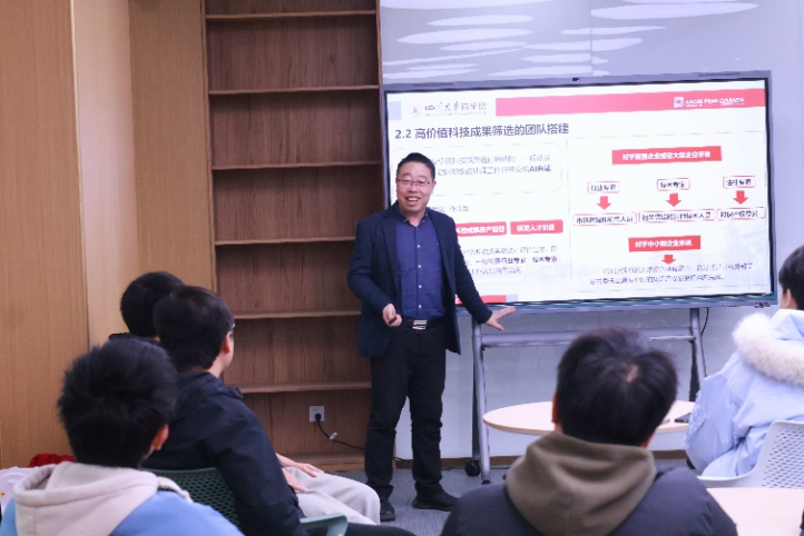 图3 梁学栋教授主讲科技成果转化
