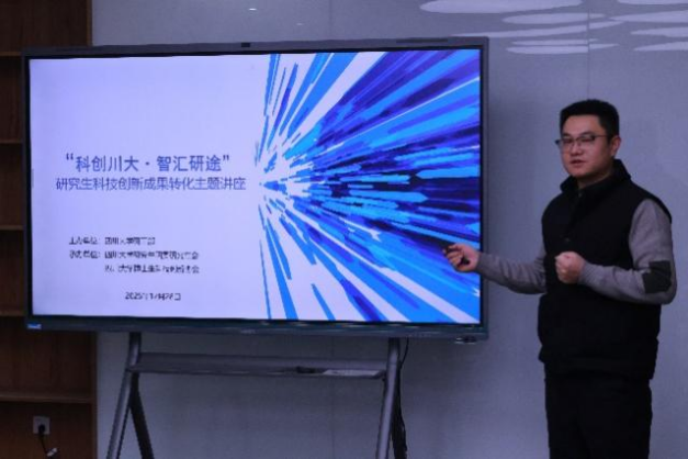 2025年12月28日下午,由四川大学研究生工作部主办,四川大学研究生团委研究生会和四川大学博士生科技创新协会共同承办的“科创川大 智汇研途”系列研究生科技创新成果转化主题讲座顺利举办。本次讲座由四川大学博士生科技创新协会会长邵东杰同学主持,并由四川大学商学院梁学栋教授进行主旨分享。