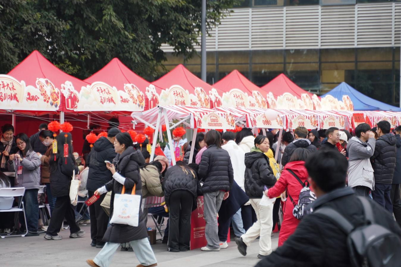 2025年12月31日,四川大学研究生院研究生工作部主办,四川大学研究生会承办的“开年大‘集’ 马到功成”主题新年市集活动在四川大学华西校区东区毛英才烈士像广场成功举办。活动从当天13:00持续至20:00,吸引了全校师生的广泛参与,共同庆祝新年的到来。