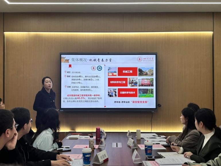 机械工程学院博士生党支部书记温慧婷作交流分享