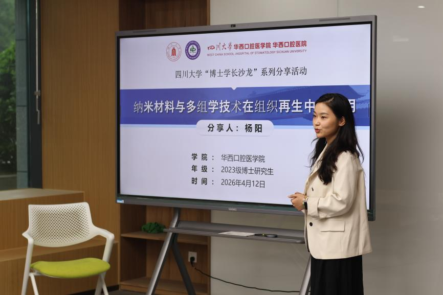 2026年4月12日晚,由四川大学研究生工作部主办,四川大学研究生团委研究生会、四川大学博士生科技创新协会、四川大学华西口腔医学院研究生团总支研究生分会与四川大学计算机学院(软件学院)研究生团总支研究生分会共同承办的四川大学2025-2026学年第四期“博士学长沙龙”——“学科交叉 跨界融合”分享活动顺利举办。